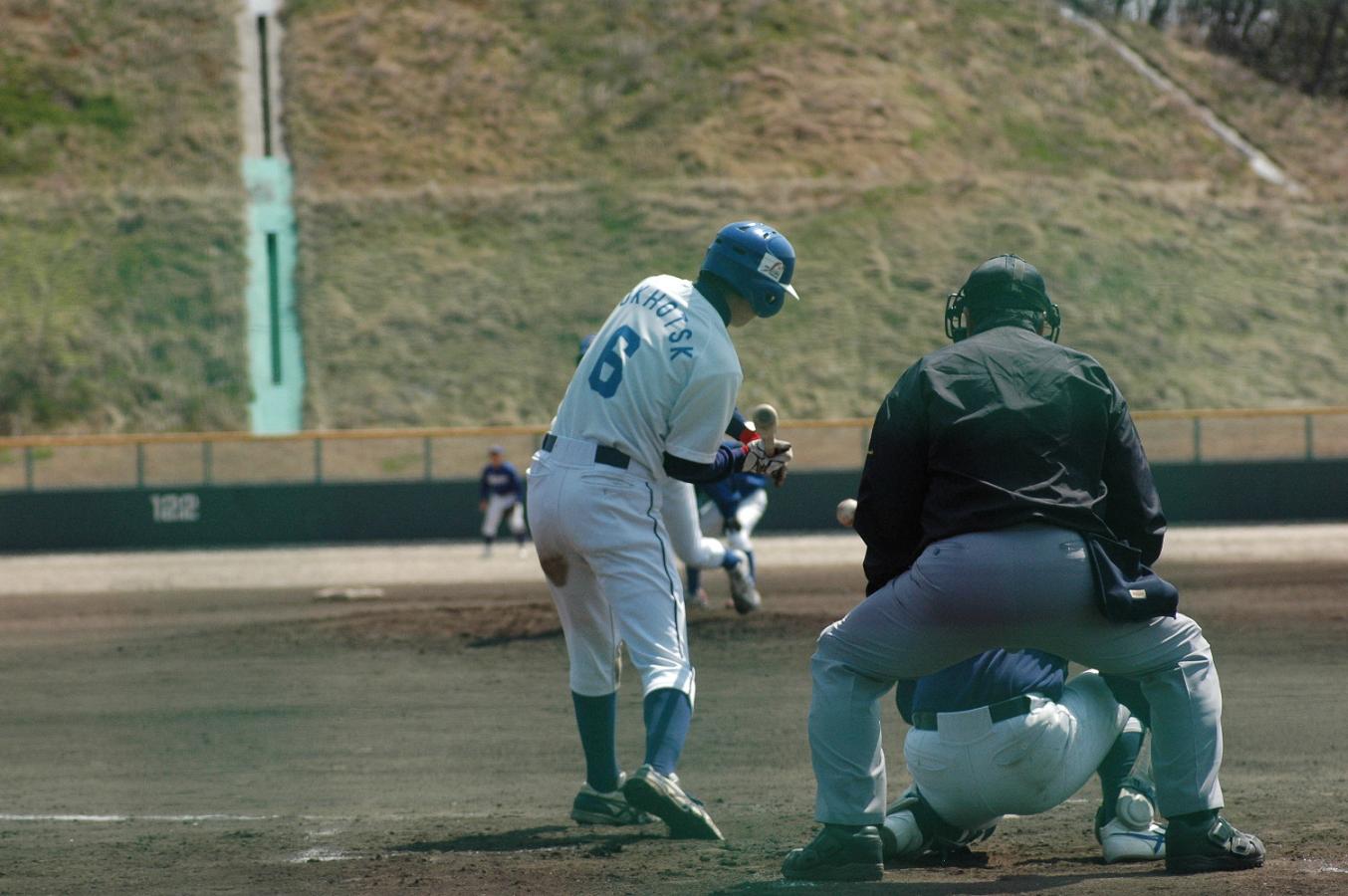 二試合目、この日も井野(2年)の2ベースヒットの後、菊地(4年)のバントと留目の(4年)のタイムリーヒットなどで点を取ったが、何の因果かこの日も3-3で試合は進み、9回の裏、旭川大学の攻撃。バッターは四番。ノーアウトランナー無し、カウント2-3から投げた球は無情にもレフトスタンドに突き刺さるサヨナラホームランとなってしまった。